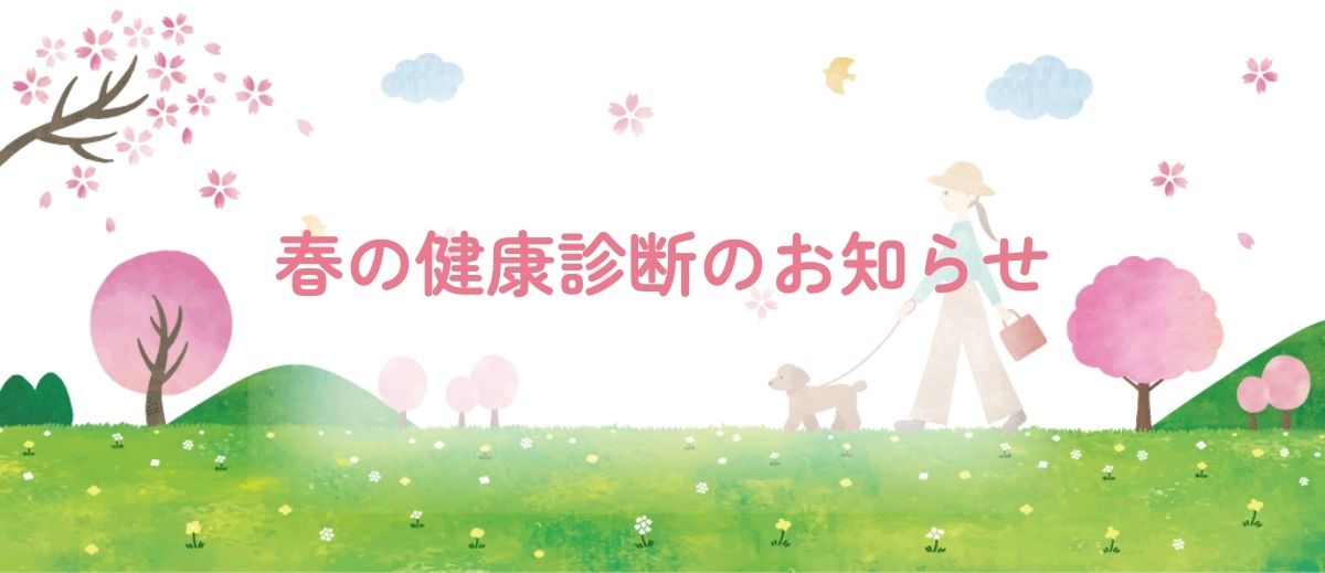 2025年3月18日 春の健康診断実施中!! 年に一回の健康診断が推奨されてます。 当院では春だけの特別な健康診断のご案内をいたしております。 この期間にお手軽に健康チェックをしてみませんか? ワクチン・狂犬病の予防接種なども承っております。 詳細につきましてはスタッフまでお尋ねください。